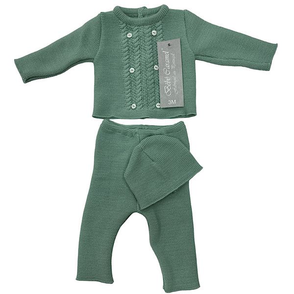Sage Cable Twist Knit 3pc Layette Set 3-12M