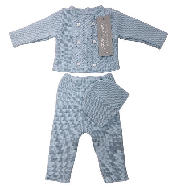 Blue Cable Twist Knit 3pc Layette Set 3-12M
