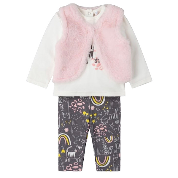 Pink/Grey Fur Gilet 3PC Layette Set 3-24M