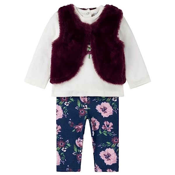 Wine Faux Fur Gilet 3PC Layette Set 3-24M