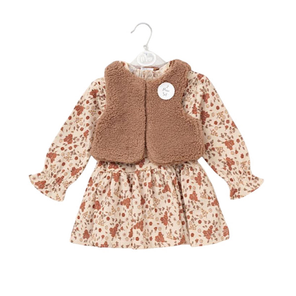 Baby Girls Two Tone 2pc Gillet & Floral Print Dress Set 0-12M
