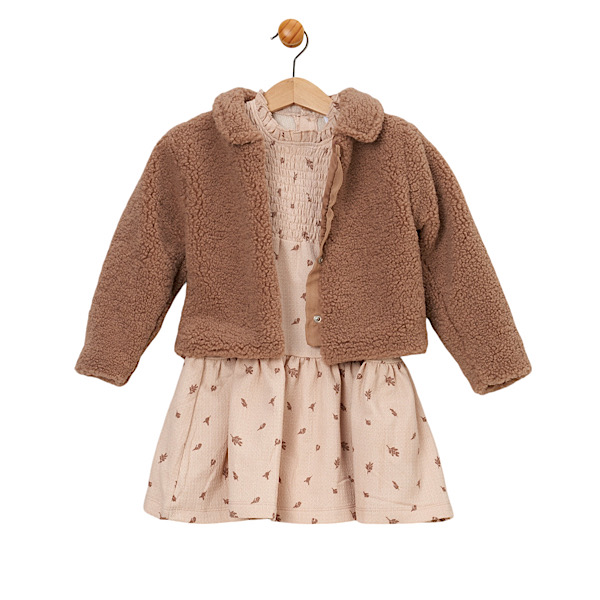 Tan/Beige 2PC Smock Dress & Coat Outfit 2-4