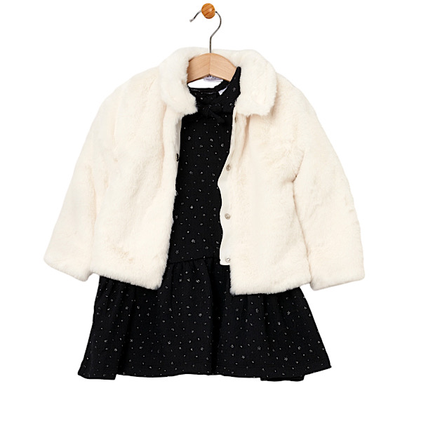 Cream/Black 2PC Shirred Dress & Coat Outfit 2-4