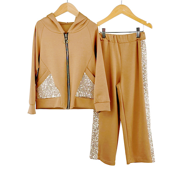 Beige Rib Shoulder Ruffle Co-ord Set 4-14