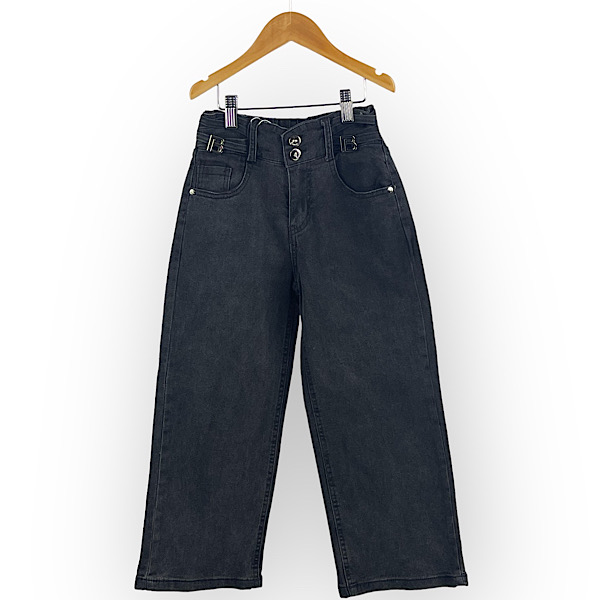 Black Elasticated Waist Wide-leg Jeans 4-14