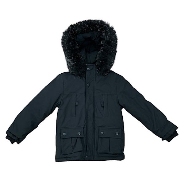 Boys Navy Padded Faux Fur Hood Jacket 1-6