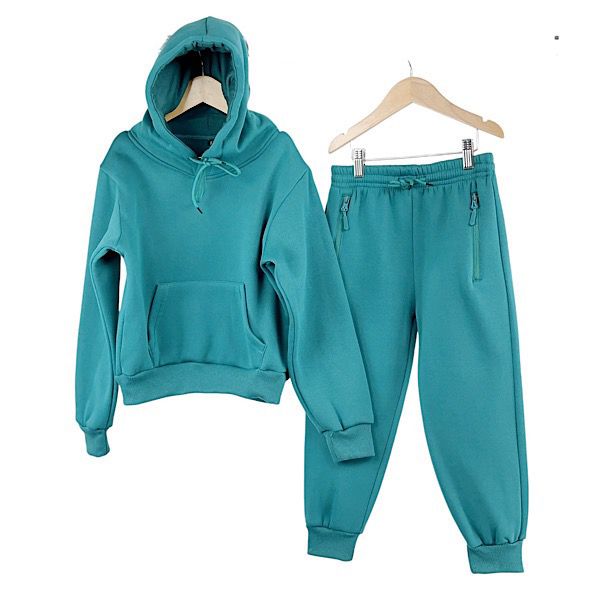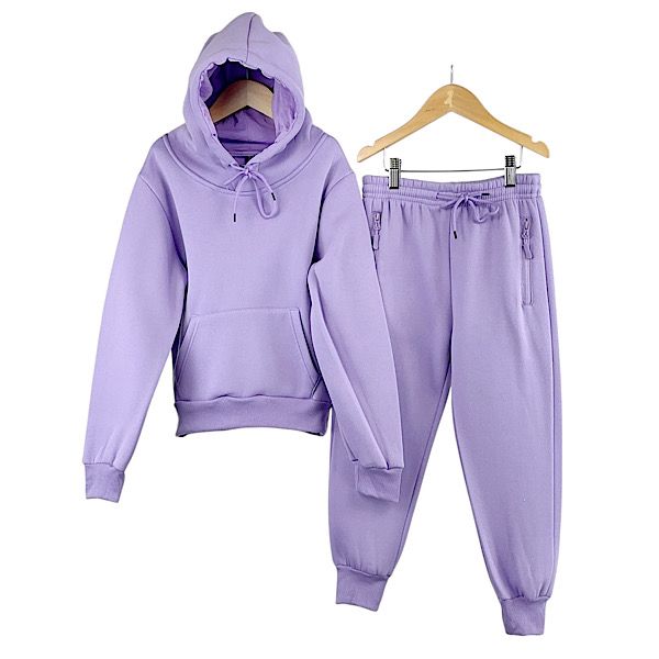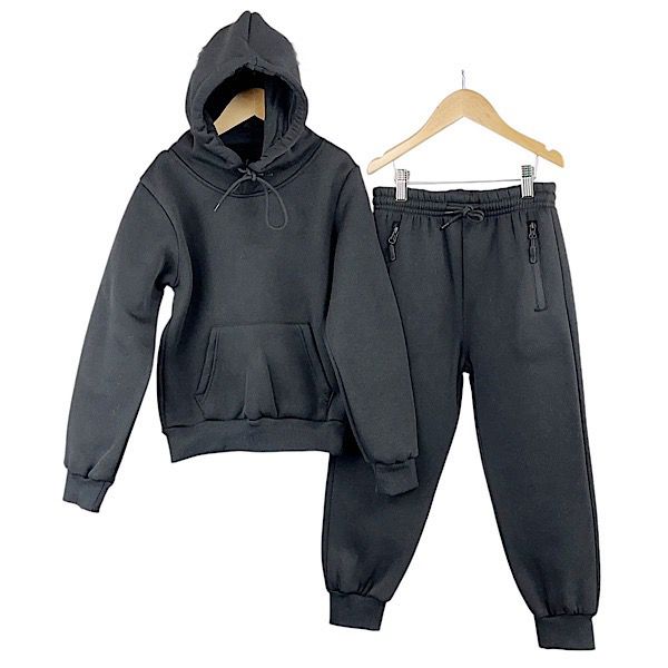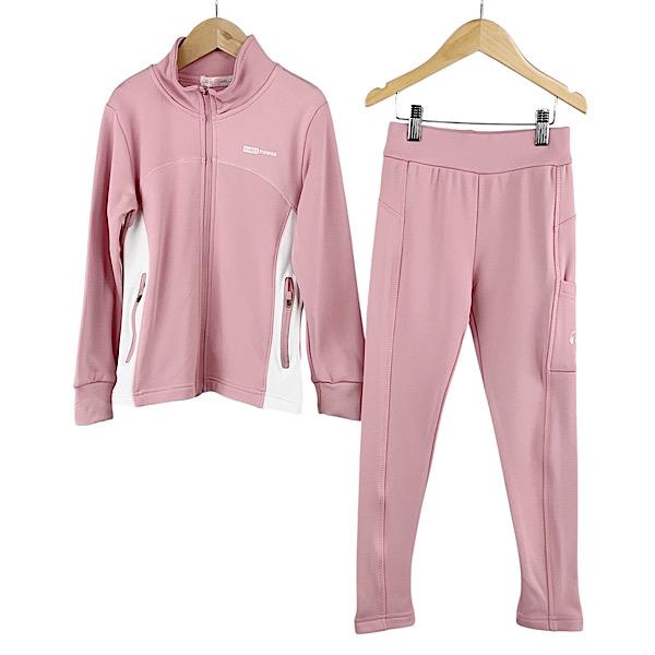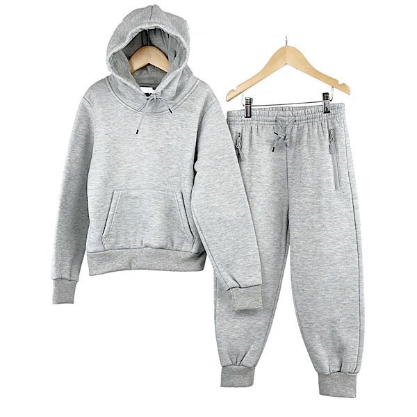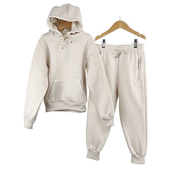 Girls two piece brown hoodie with perforated sleeves paired with co-ord white striped wide leg lounge pants.