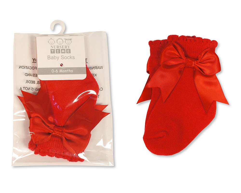 Red Satin Bow Scallop Socks 0-18M
