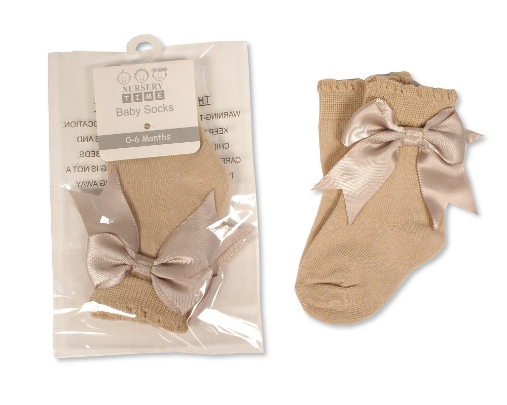Camel Satin Bow Scallop Socks 0-18M