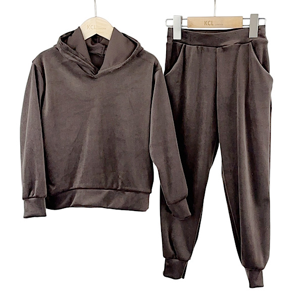 Girls 2pc Full Zipped Ruched Sleeve Lounge Set with co-ord jog trousers.