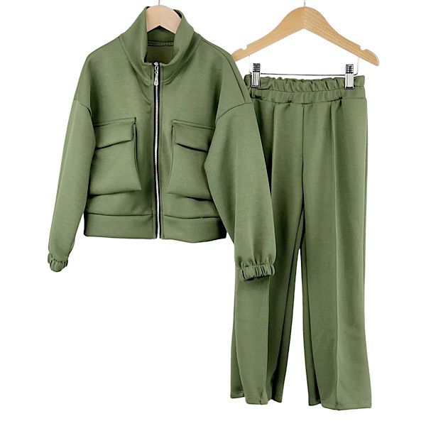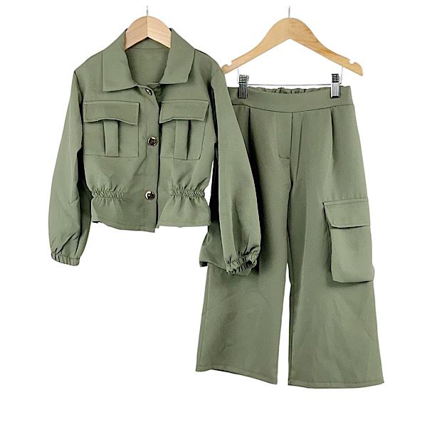 Khaki 2PC Combat Wide Leg Co-ord Tracksuit 4-14