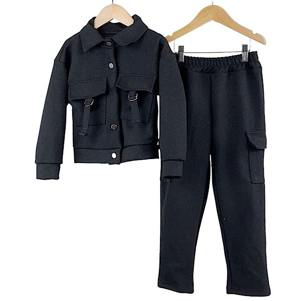 Black 2PC Combat Button Co-ord Tracksuit 4-14