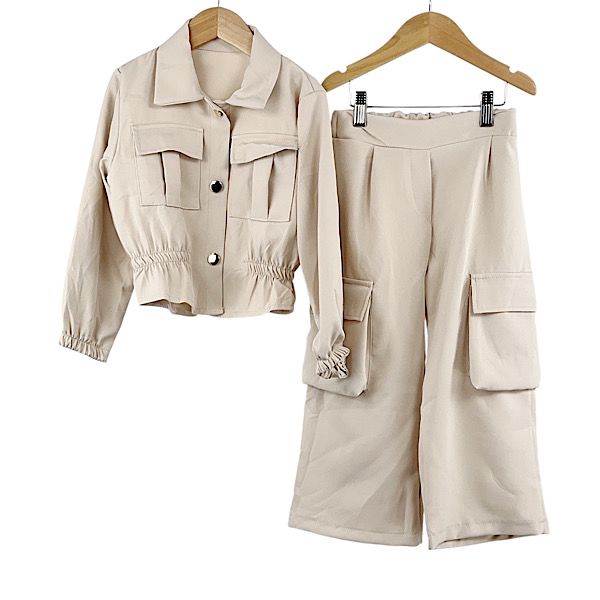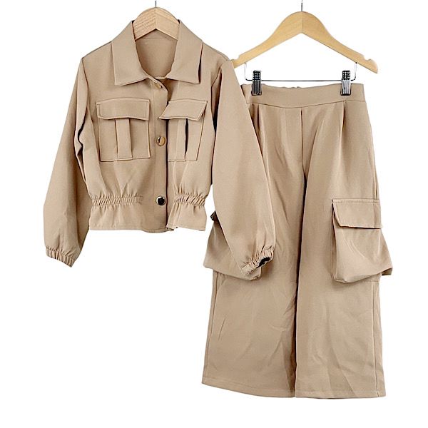 Beige 2PC Combat Wide Leg Co-ord Tracksuit 4-14
