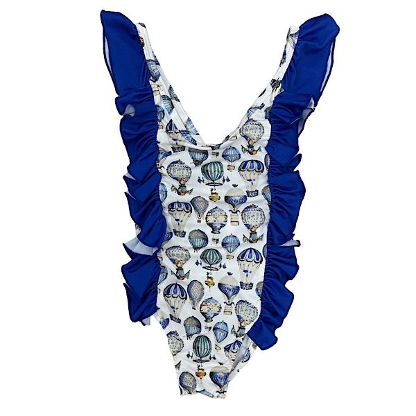Girls Blue Balloon Bow Frill Swimsuit 2-8