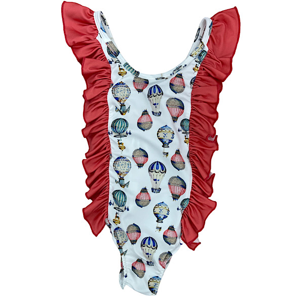 Girls Red Balloon Bow Frill Swimsuit 2-8