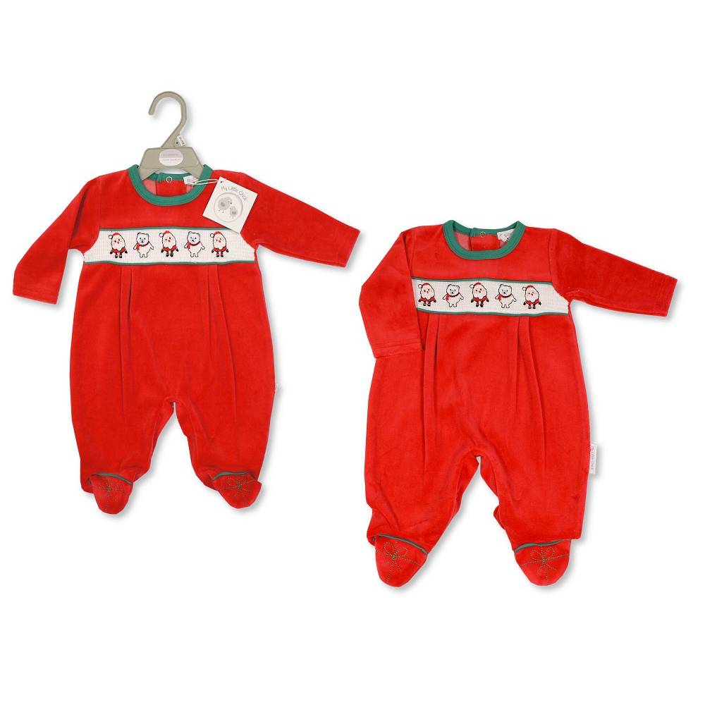 Red Santa & Polar Bear Xmas Smock Sleepsuit NB-6M