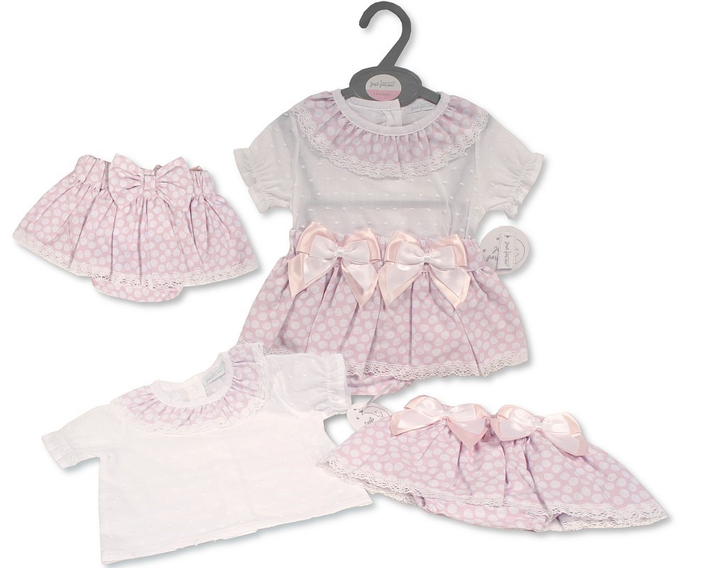 Pex Pink 2PC Cable Twist Dungaree Outfit NB-9M