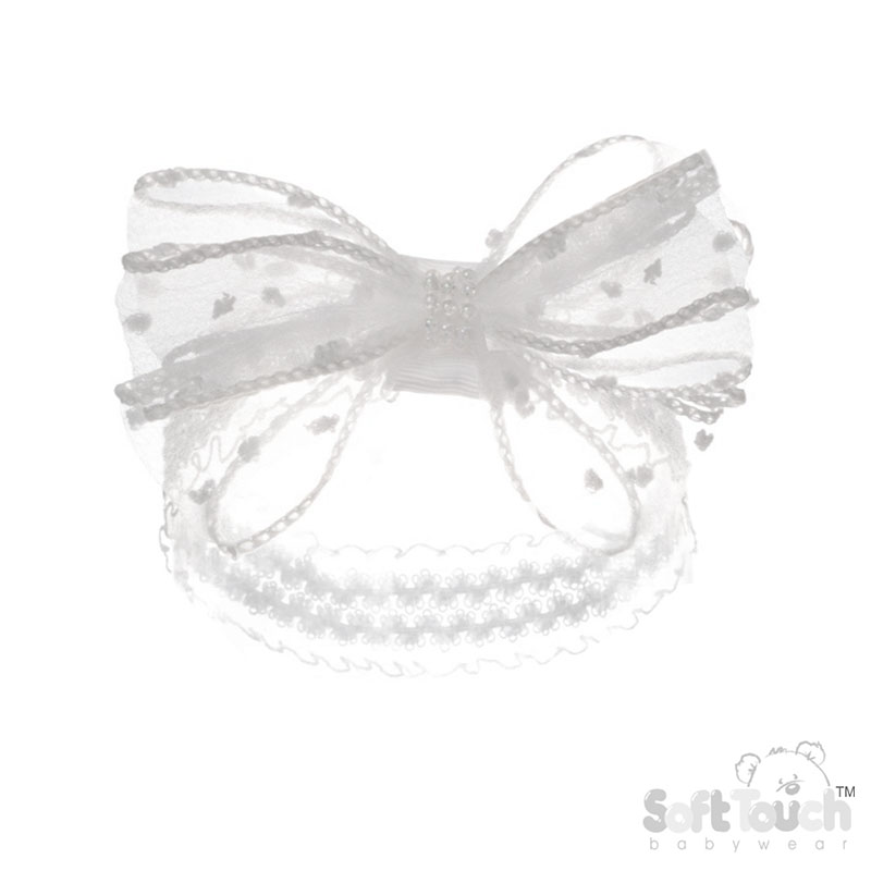 White Organza Bow & pearl Headband (One Size)