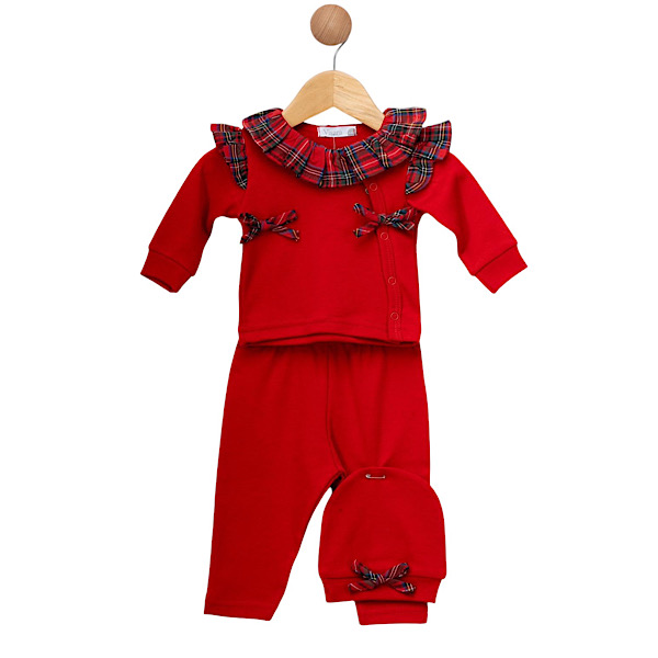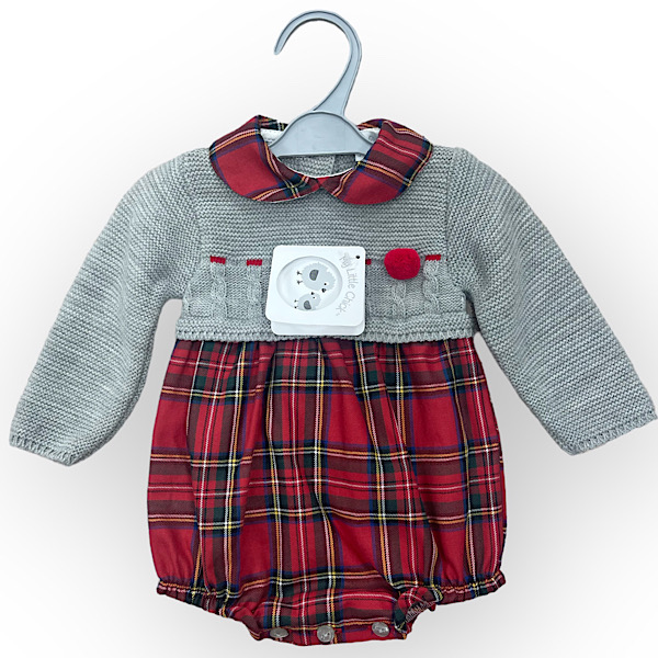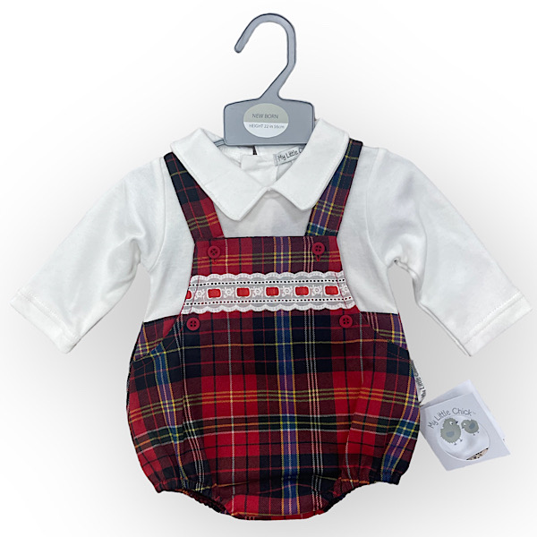 Baby & Toddlers red plaid pinafore romper with red button detail paired with red piped collar white shirt set.