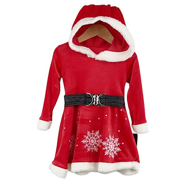 Red Velour Fur Hood Peplum Santa Dress 2-12