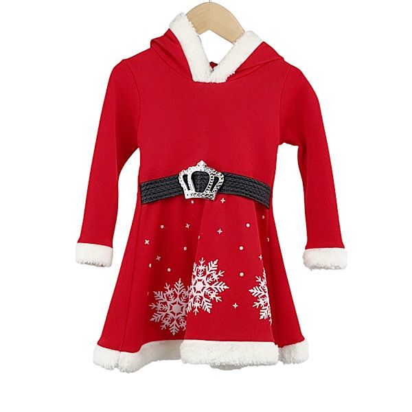 Red Velour Fur Hood Crown Xmas Santa Dress 1-7
