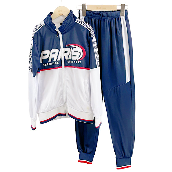 Unisex Kids boys two tone beige chevron block colour zipped hooded track jacket paired with co-ord track pants set.