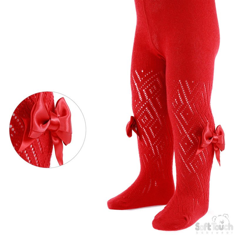 Red Pereline Satin Bow Tights 0-24M