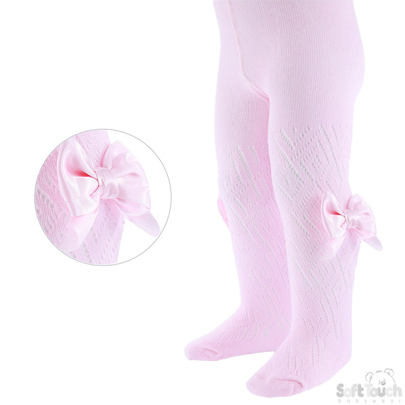 Baby Pink Pereline Satin Bow Tights 0-24M