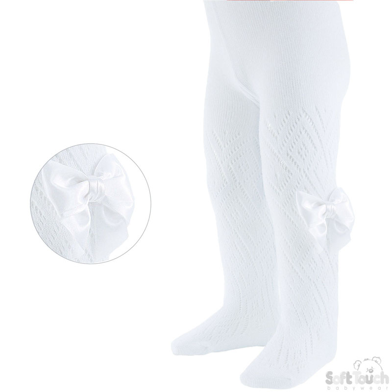 White Pereline Satin Bow Tights 0-24M