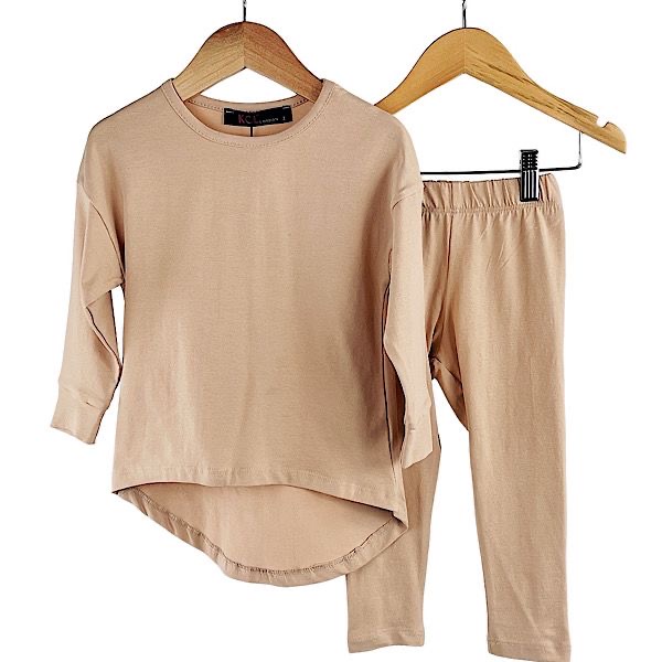 Beige Handwarmer Hoodie & Pants Set 4-14
