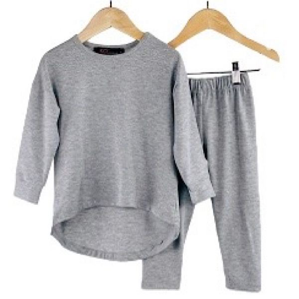 Kids beige handwarmer hoodie with quote motif detail on cuffs paired with co-ord drawstring pants.