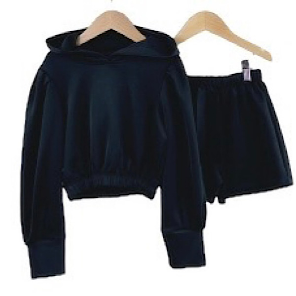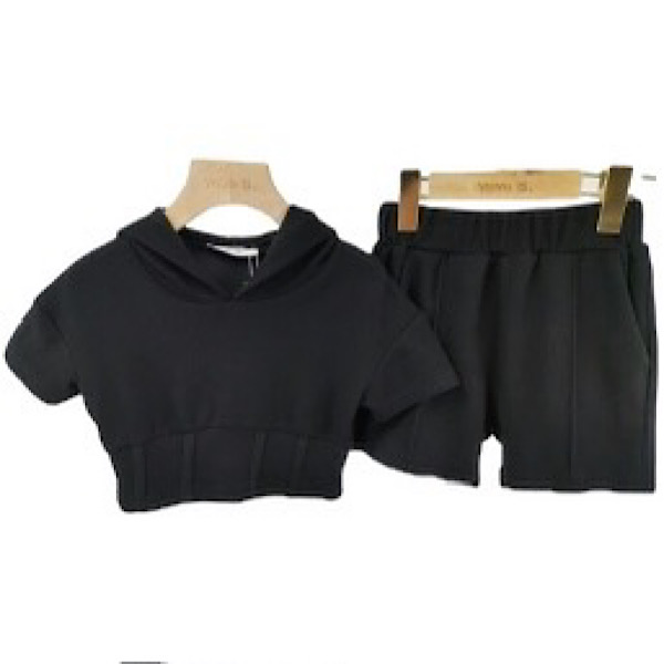 Black Faux Bustier Hoodie Shorts Set 4-14