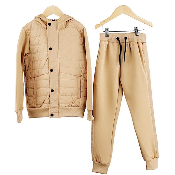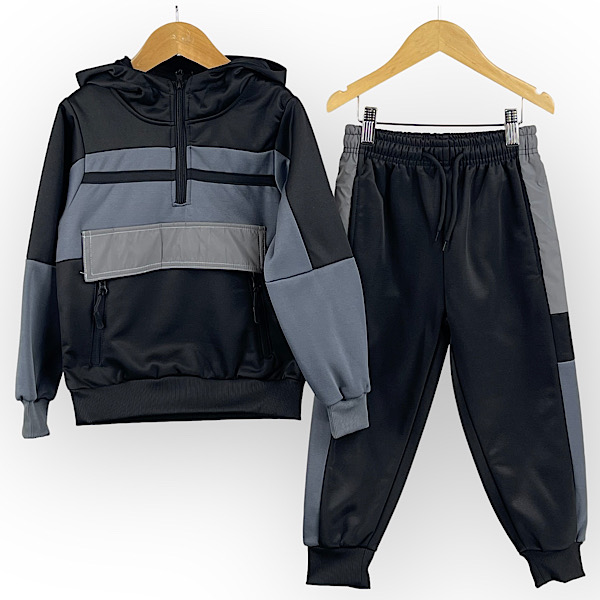 Kids black sweatshirt with velcro pockets paired with co-ord combat joggers set.