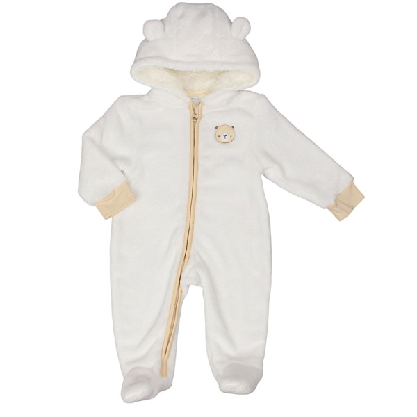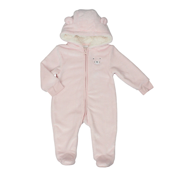 Peach/White Bear Sherpa Fleece Pramsuit 3-12M