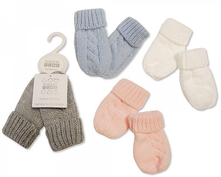 Baby Pink Cable Twist Knitted Mittens (NB)