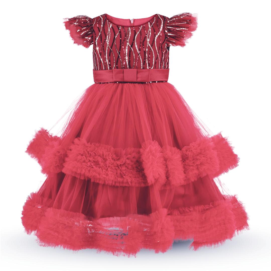 Red Sequin Ruffle Frill Cake Dress 3-10