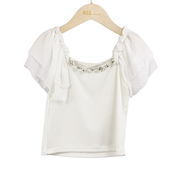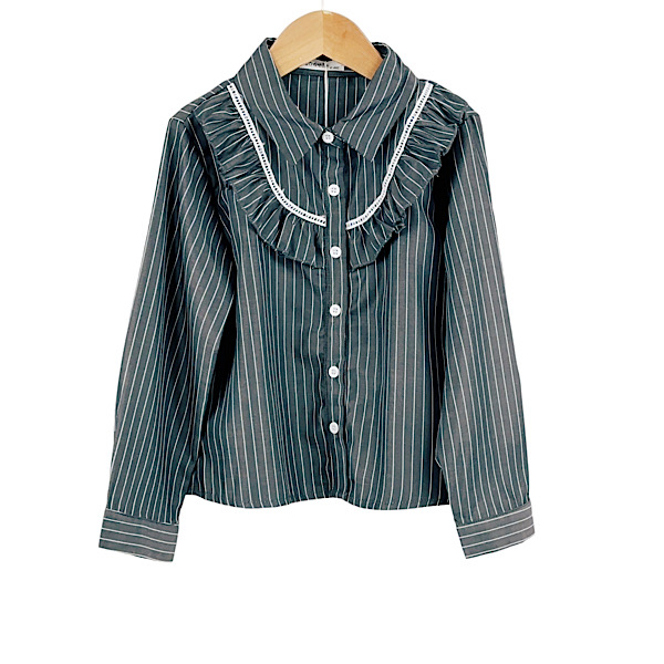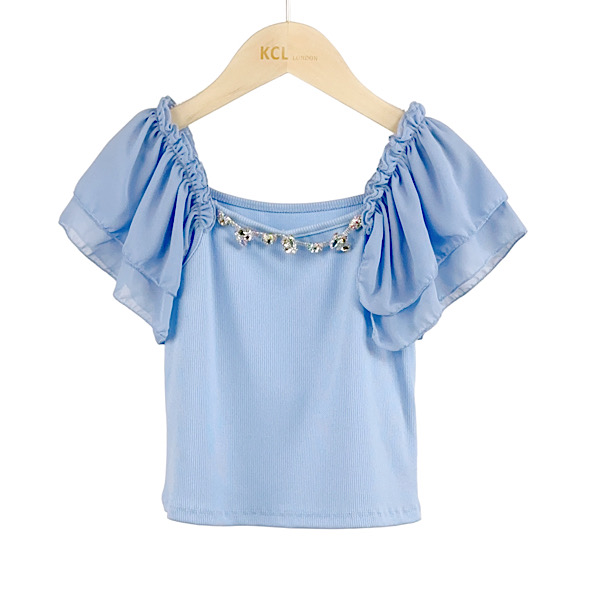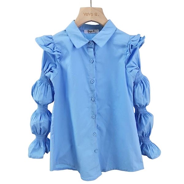 Blue Bubble Sleeve Frilled Shirt 4-14