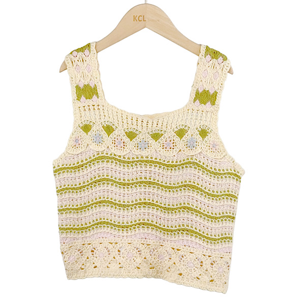 Green/Beige Knit Boho Jersey Crop Top 4-14
