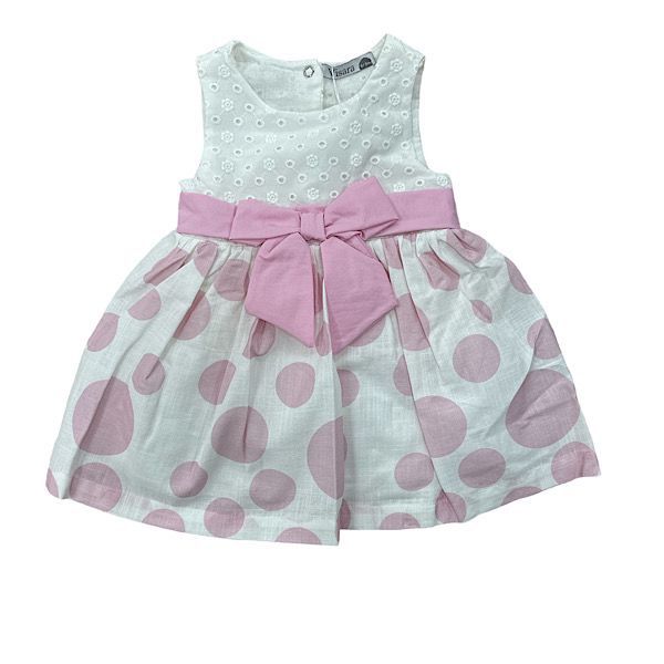 Pink/Ivory Perforated Polka Bow Dress 6M-3YRS