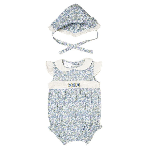 Girls Floral Smocked 2pc Romper Set 0-12 Months