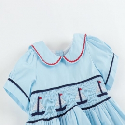 Hand Smocked Cotton Dress & Pants Set 3-30M