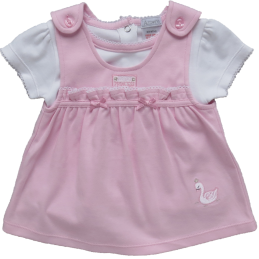 B/Pink Swan Pinafore Dress Set 0-9M