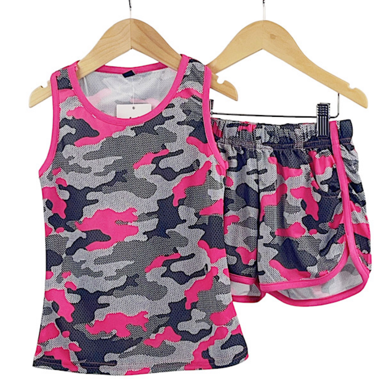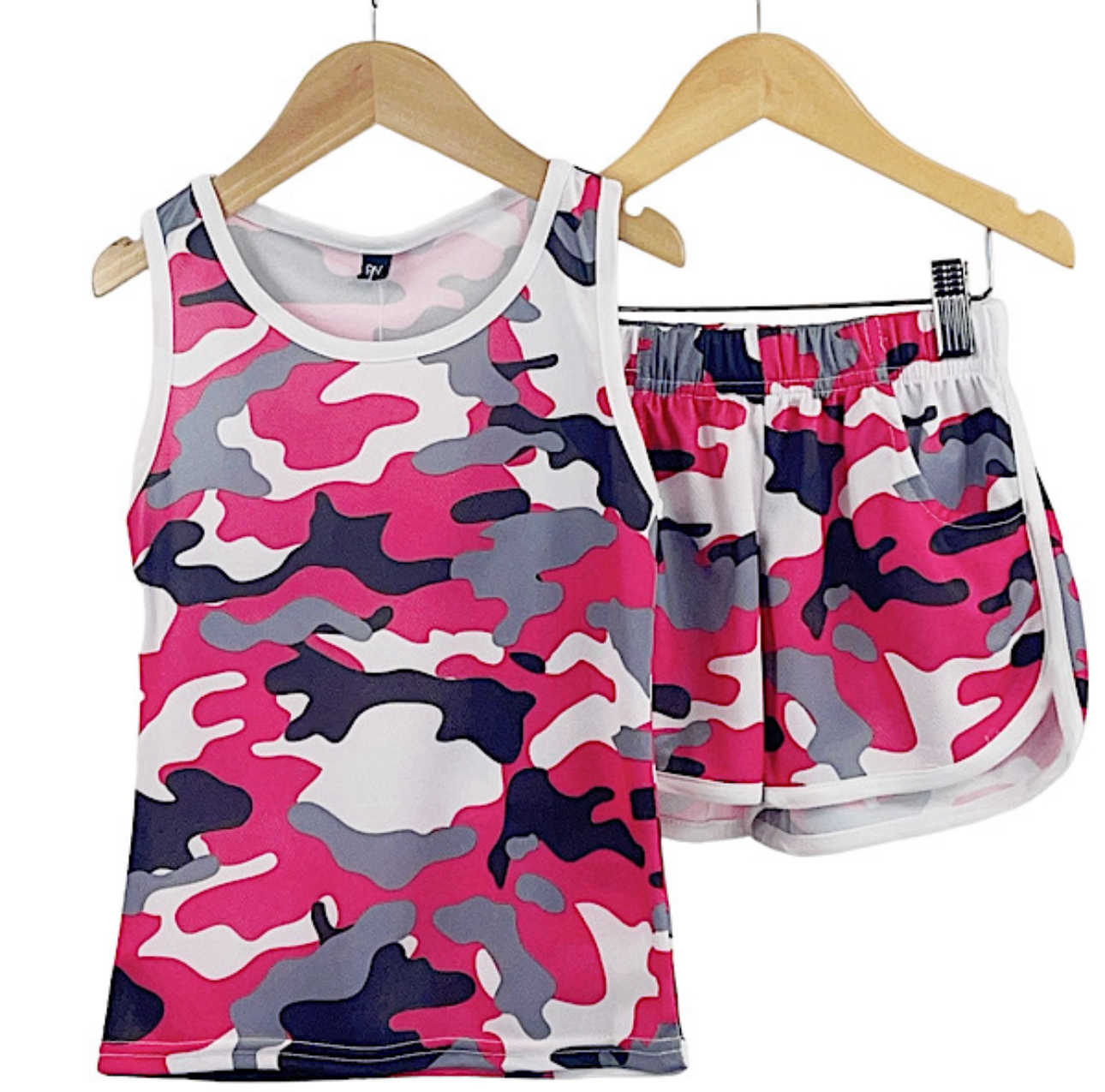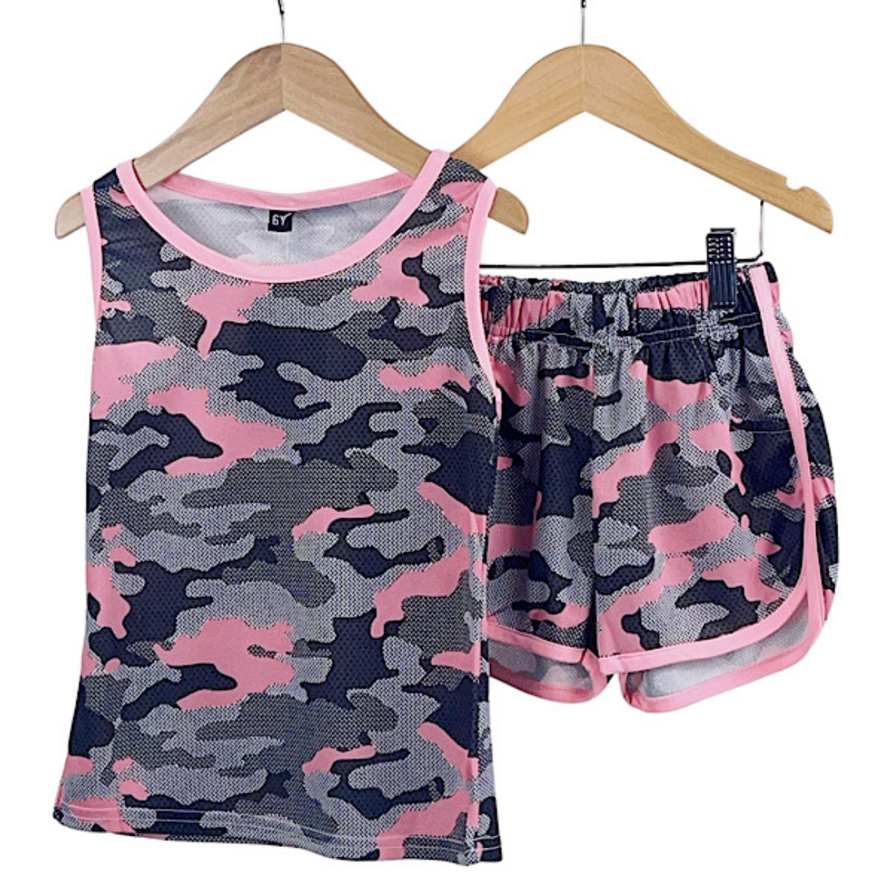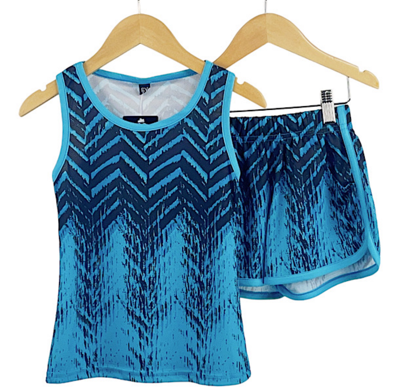 Kids Spanish style top with pinstripe & orange fruit print, round frilled collar and puffed short sleeves paired with co-ord shorts set.