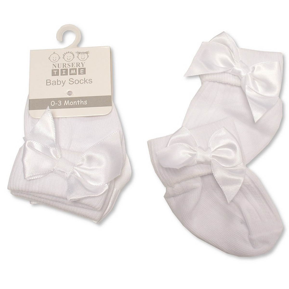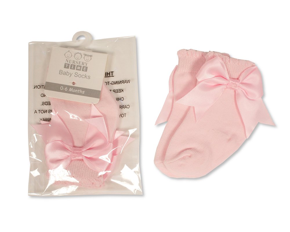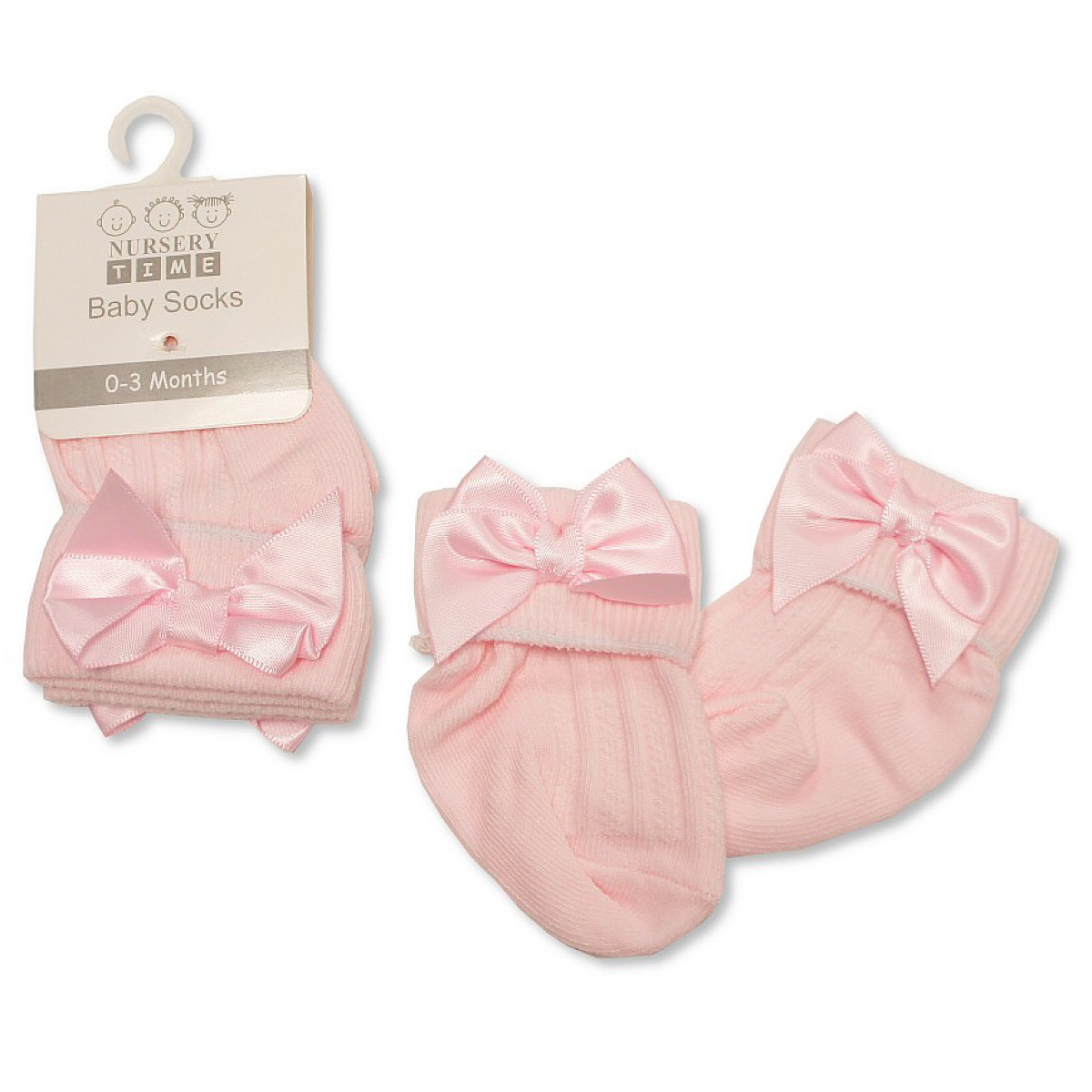 Pink Satin Bow Knee HIgh Socks 0-18M