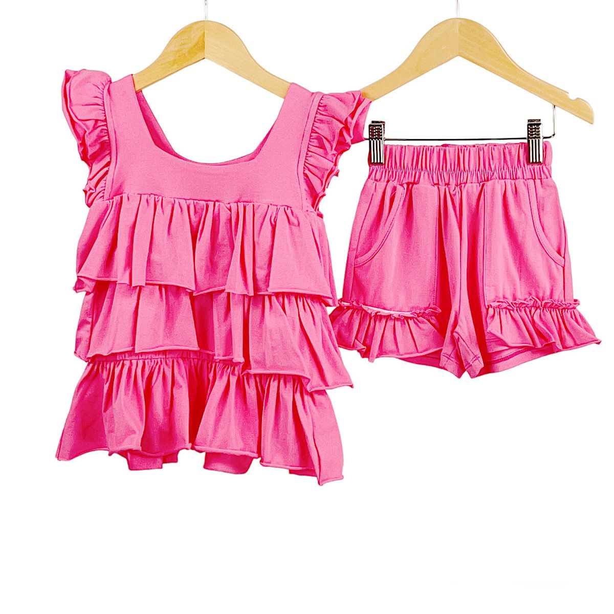 Hot Pink Ruffle Layered Top & Co-ord Shorts 4-14
