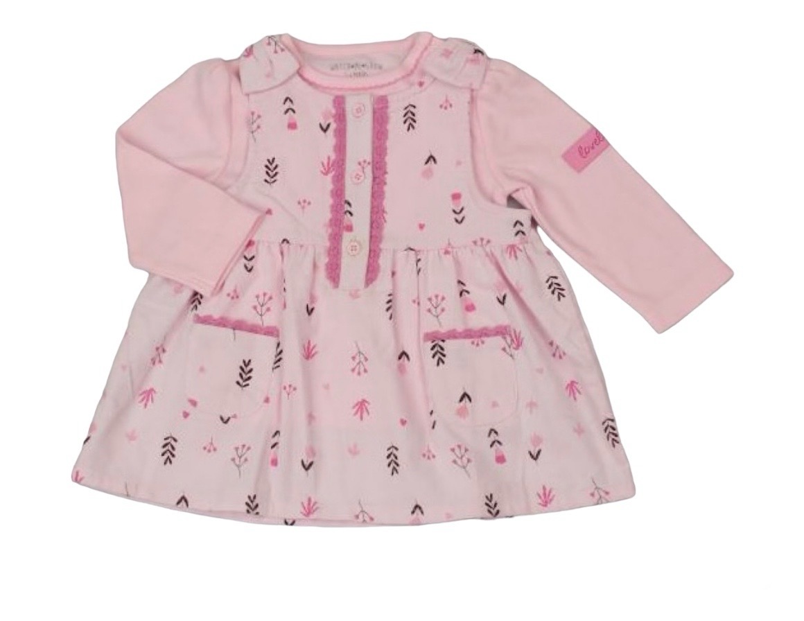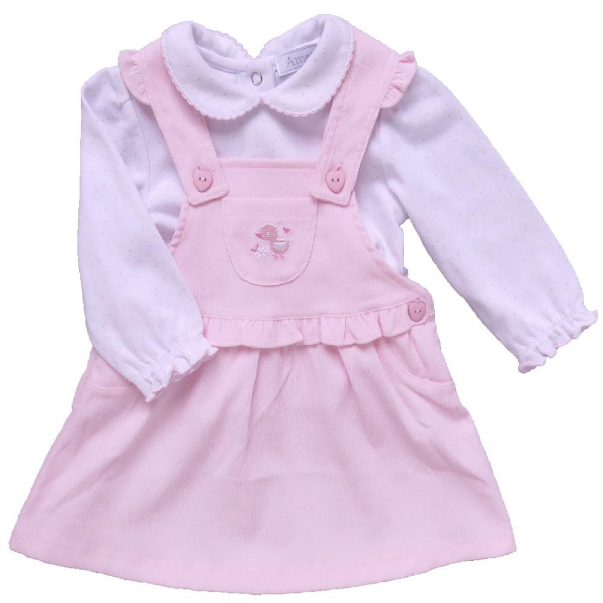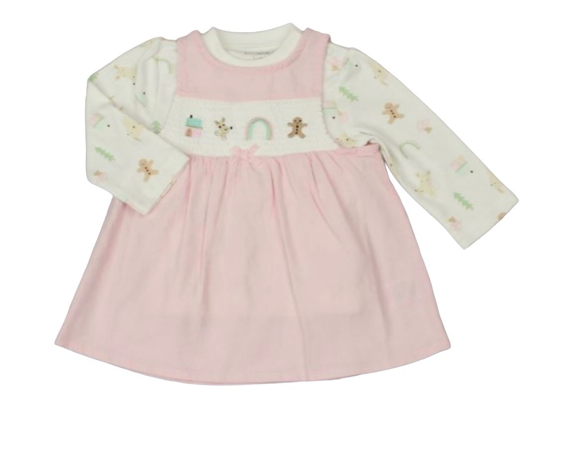 B/Pink Frilled Pinafore Dress & Top Set 0-9M