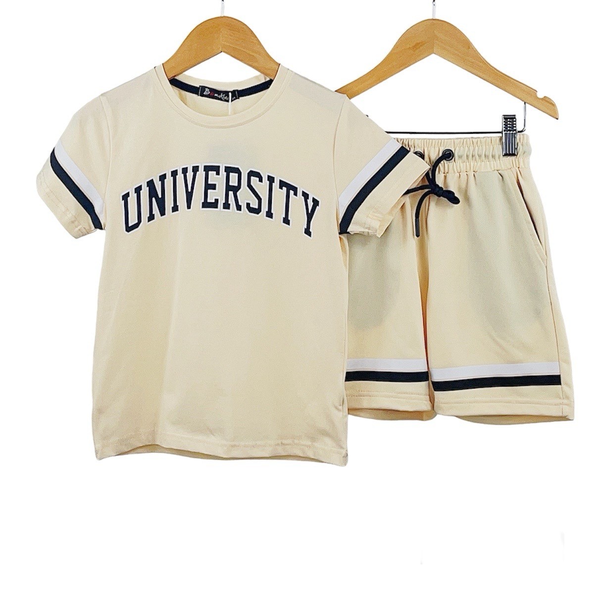 'University' Print T-Shirt & Shorts 2PC Set 4-14