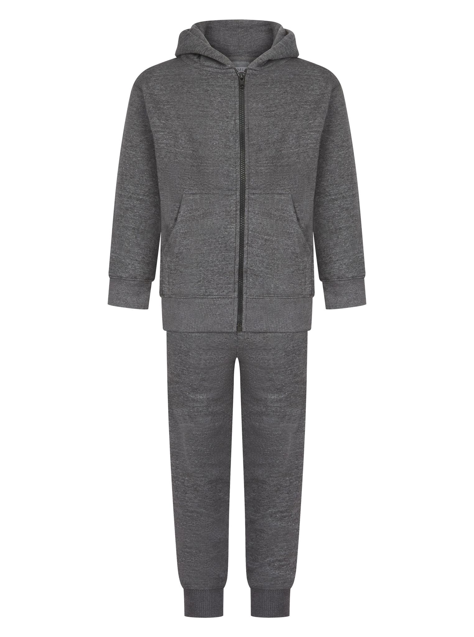 Kids Samli Premium Collection dark grey tracksuit hoodie with handwarmer pocket paired with co-ord pants set.