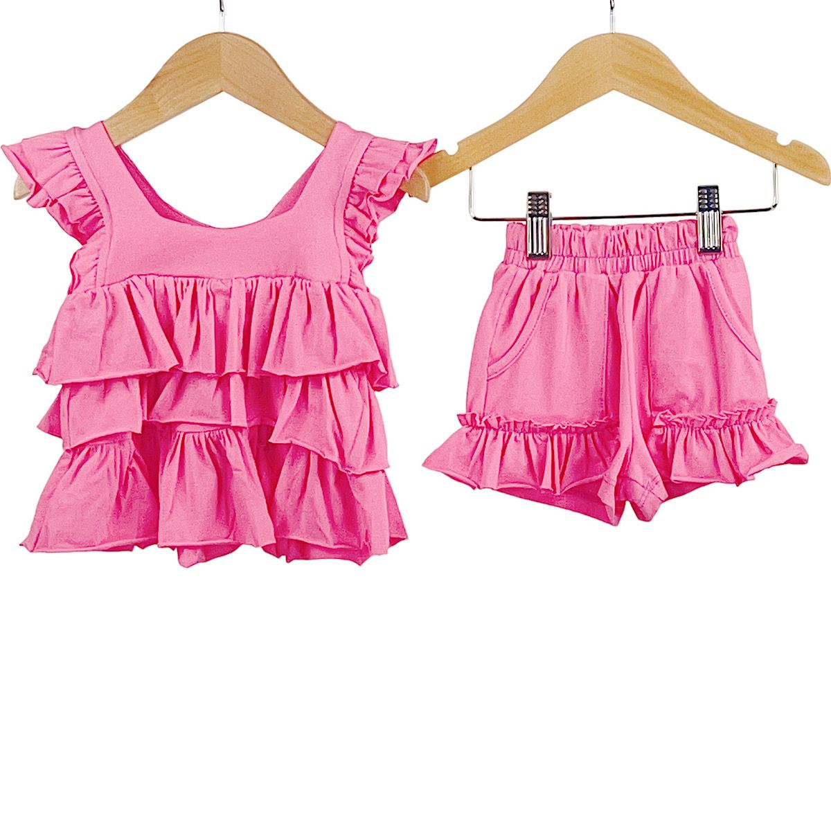 Baby & Toddlers Samli Premium Collection buttoned hot pink short sleeve shirt with pointed collar and chest pocket detail paired with co-ord piped shorts set.