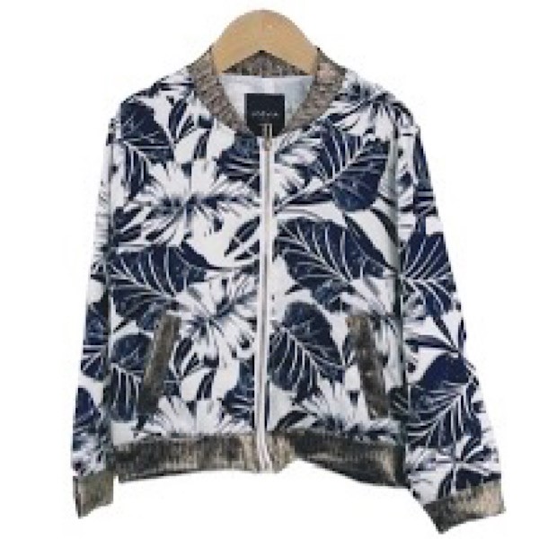 Navy & White Leaf Motif Bomber Jacket 4-14